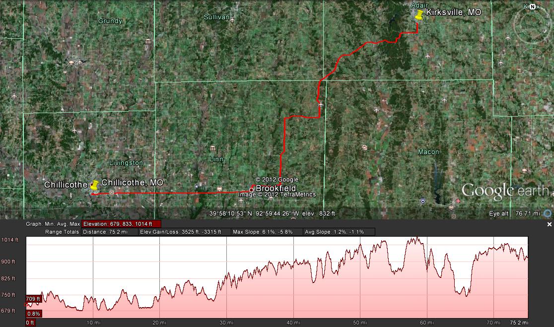 Day 29: Chillicothe to Kirksville MO by xctom2012 at Garmin Connect - Details
